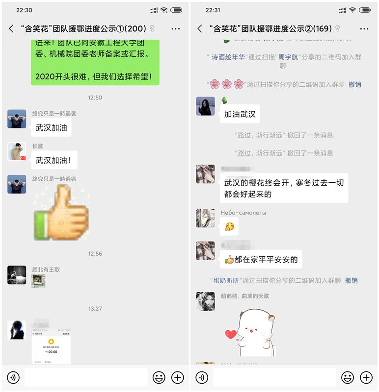 机械与汽车工程学院“含笑花”志愿者团队的同学们也注意到了这些揪心的求助公告,仔细搜索并分析了海量的援助方法与渠道,与在一线的医疗人员沟通,在校团委和院团委的监督指导下于1月25日00:00发起了“驰援湖北 公益募捐”行动,学院各班级和团支部积极响应。