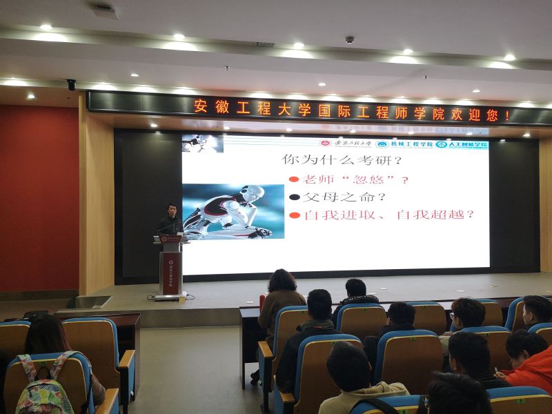 3月12日下午,欧美av 在国际工程师学院大报告厅举行机器人工程专业2018级考研动员暨学业指导交流会。学院党委副书记李文江、教师代表、机器人工程专业2018级全体学生共160余人参会。交流会由智能制造工程系主任刘玉飞主持。