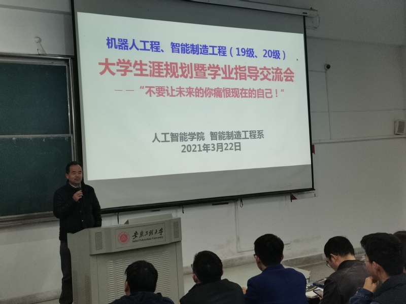 为引导大一、大二年级学生认真做好大学生涯规划,3月22日晚,在5J217举行了机器人工程专业和智能制造专业大学生涯规划暨学业指导交流会。学院党委书记伊长文、党员教师代表、辅导员与现场220余名同学就学业规划展开交流。教师们结合机器人和智能制造领域具体实例,向在场同学分析了“你该学什么?”,阐述了专业的核心知识、技能和发展方向,同时就课程学习、创新创业、考研就业等方面与在场同学展开互动交流,耐心解答同学们的困惑,让同学们对专业有了更清晰的认识,为引导同学们做好大学生涯规划起到促进作用。