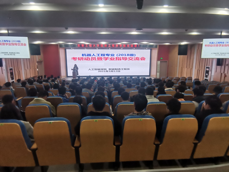 3月12日下午,在国际工程师学院大报告厅组织了机器人工程专业2018级考研动员暨学业指导交流会。学院党委副书记李文江、党员教师代表与现场150余名学生就学业和考研展开交流,指导同学们合理规划学业,强化专业知识学习和实践能力培养,并从考研意义、学校专业、报考类别选择等方面做了分析解读。在师生互动环节,老师们结合自身体会,从不同角度分析了专业知识学习和实践能力培养对考研和就业的重要意义,为同学们合理规划学业,推动考研和就业起到积极作用。