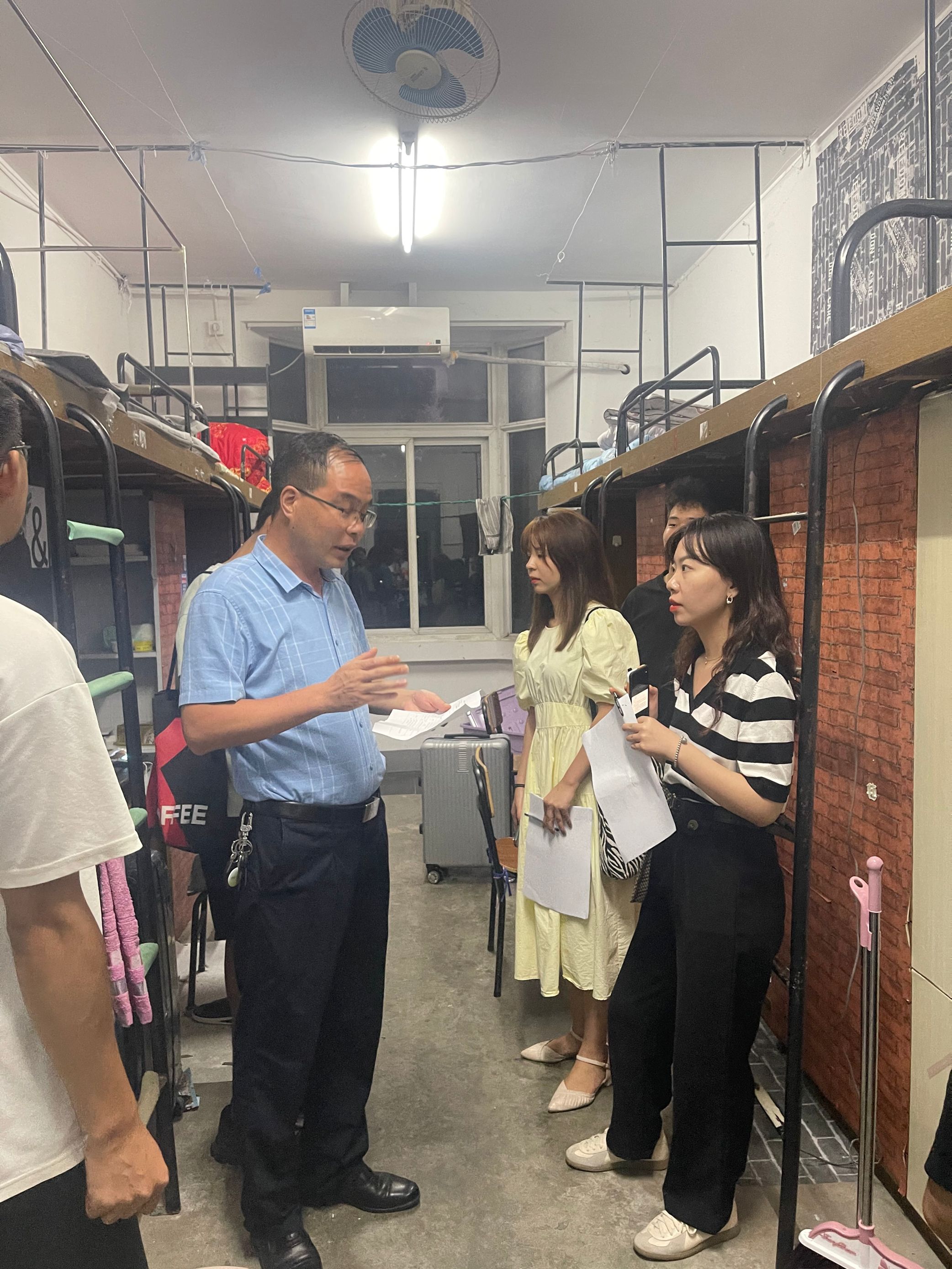 迎新当晚,学院党委副书记何志恒与本科新生辅导员一同深入学生一线走访新生宿舍,询问新生住宿、吃饭等多方面的生活问题,提醒新生增强安全防范意识,鼓励新生要积极调整心态,尽快适应大学生活。