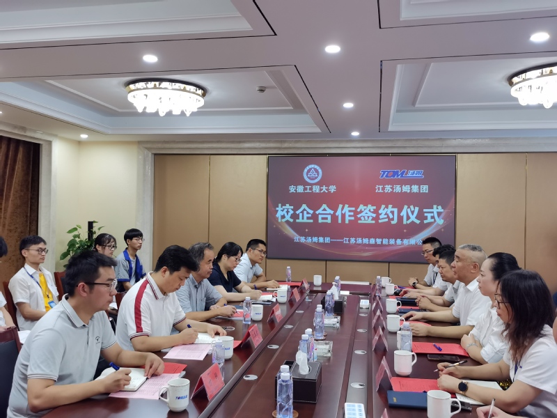 为做好2022届毕业生就业工作,巩固就业市场,加强校企交流,9月25日,机械工程学院(欧美av )党委书记伊长文、党委副书记李文江、副院长江本赤、智能制造系主任刘玉飞、教学秘书方明、毕业班辅导员程雷一行赴常州市江苏汤姆集团就人才培养与就业基地合作建设进行洽谈,并回访2021届毕业生。