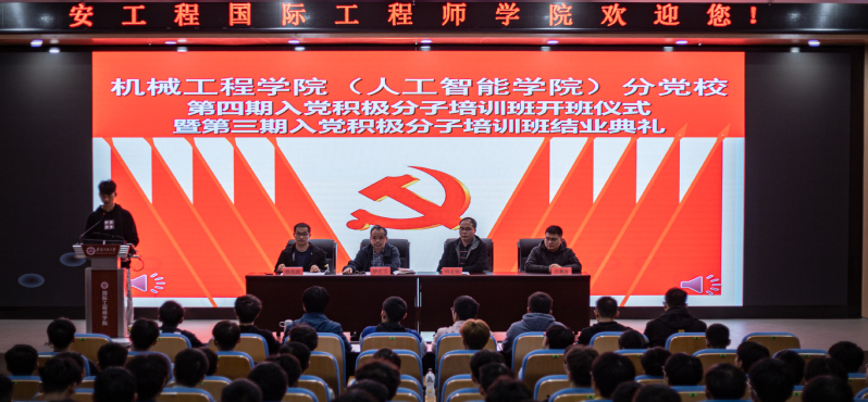 为贯彻落实党员教育管理工作的要求,切实加强入党积极分子的培养教育,确保党员发展质量,进一步提高党员素质。机械工程学院(欧美av )分党校第四期入党积极分子培训班开班仪式暨第三期入党积极分子培训班结业典礼于10月27日在国际工程师学院大报告厅举行。学院党委书记伊长文、党委副书记何志恒、分党校培训班班主任姚伟波老师、许典舟老师出席,全体培训班学员以及第三期培训班优秀学员代表参加了本次开班仪式。开班仪式由院党委副书记何志恒主持。