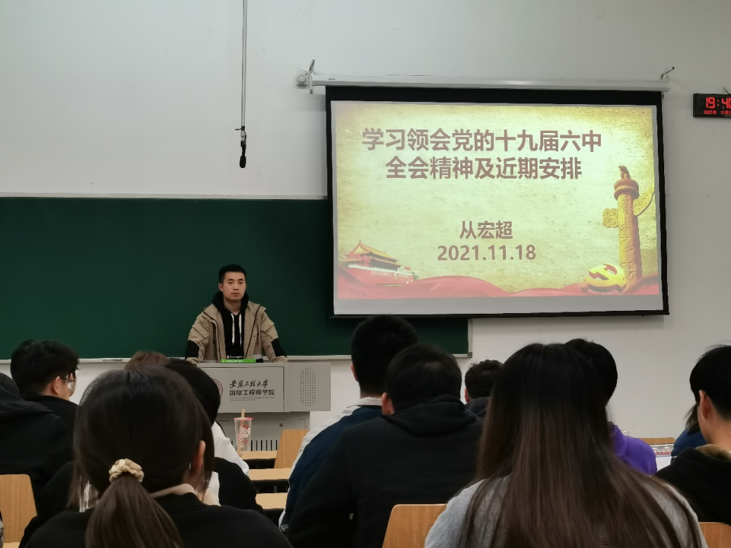 2019级辅导员通过简短的视频以及文件解读,带领学生学习党的十九届六中全会精神,加强党史学习教育。同时,围绕学期期中阶段班级共同关注问题进行研讨,分别从宿舍安全文明卫生、疫情防控、早出晚归、学费缴纳、网络诈骗、课堂新态、考风考纪、青年大学习等方面存在的问题进行强调,指导学生做好人生规划,更好地学习和生活。