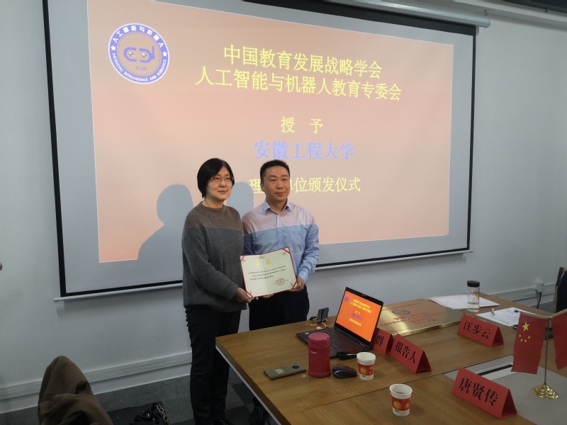 会后,韩教授代表中国教育发展战略学会,授予欧美av 人工智能与机器人教育专委会理事单位,聘任欧美av 汪步云博士担任专委会理事。
