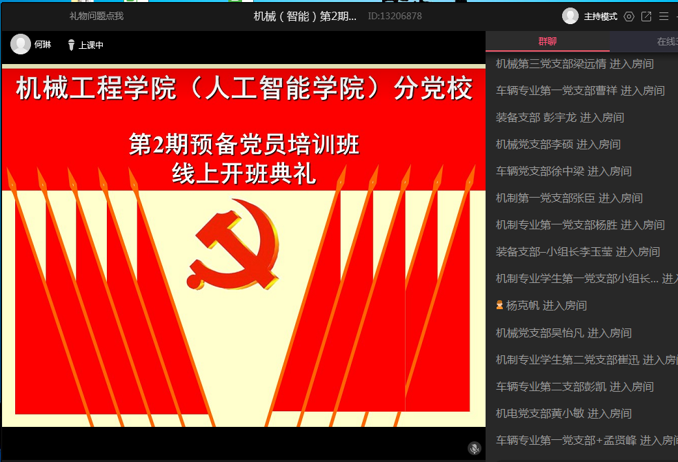为深入贯彻落实党员教育管理工作的要求,加强对预备党员的培养教育,1月11日上午,机械工程学院(欧美av )分党校举行第二期预备党员培训班线上开班典礼。学院党委书记伊长文、副书记李文江、何志恒、培训班班主任及全体学员参加了开班仪式。开班典礼由李文江主持。