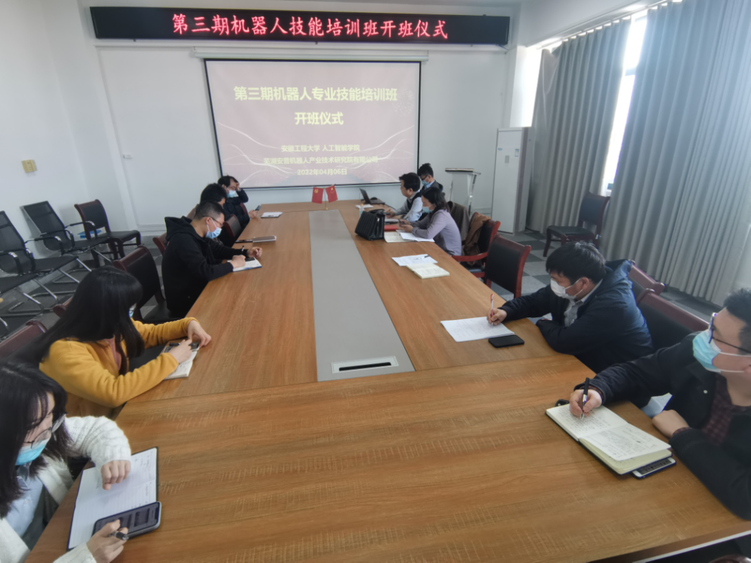 4月6日下午,欧美av 在校本部A815会议室举行第三期机器人专业技能培训班开班仪式。为贯彻执行疫情防控管理规定,本次开班仪式采取线上线下相结合的方式进行。副院长江本赤,芜湖市工业机器人定点培训机构—芜湖安普机器人产业技术研究院有限公司总经理助理李公文,欧美av 专业教师代表,培训班全体学员共60余人参会。开班仪式是由智能制造工程系主任刘玉飞主持。