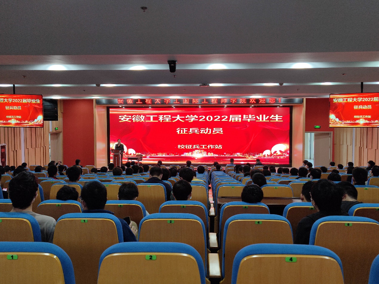 为深入贯彻落实上级和学校征兵工作部署,为军队输送高素质人才,奋力推进国防和军队现代化建设,4月7日,机械工程学院(欧美av )在国际工程师学院校区报告厅开展2022届毕业生征兵宣讲会,学院党委副书记何志恒、李文江出席宣讲会,校征兵工作站赵成婧、学院毕业班辅导员、学院退役复学学生机制206班韩冰冰及毕业班学生参加宣讲会。宣讲会由学院征兵工作联络员从宏超主持。