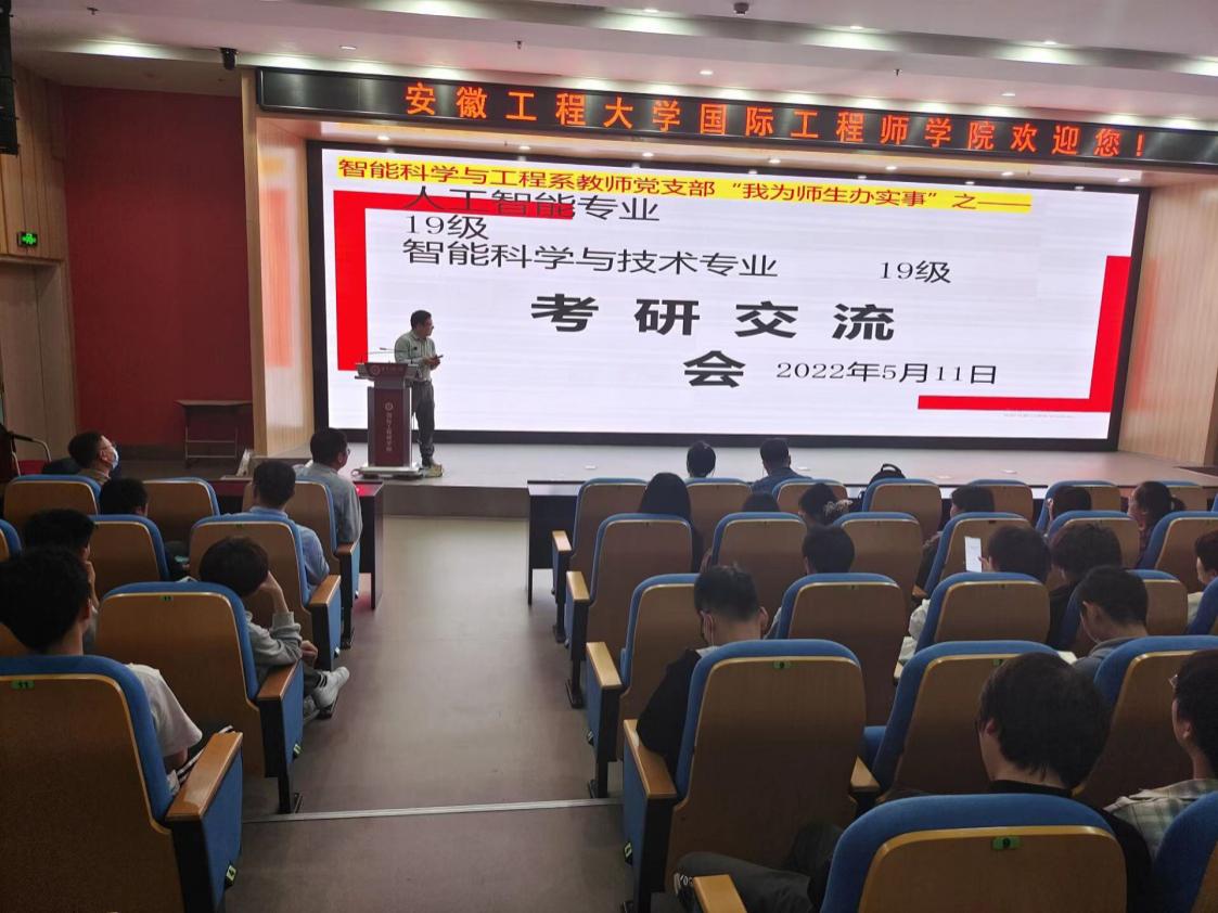 5月11日,欧美av 智能科学与技术系在国际工程师学院图文信息中心一楼报告厅,召开考研辅导交流大会,为人工智能专业、智能科学与技术专业2019级考研学生分析考研形势、解读考研政策。智科系全体专业老师参与了交流会。