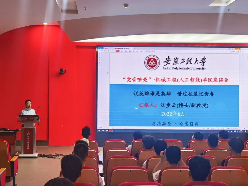 为引导学生党员坚定理想信念,树立远大抱负,机械工程学院(欧美av )“党音嘹亮”大讲堂之“说英雄谁是英雄,昔过往追忆青春”专题讲座于6月1日下午在国际工程师学院报告厅举行。本期主讲嘉宾为教师党员代表、安徽省战略性新兴产业技术领军人才汪步云副教授。学院党委副书记李文江、辅导员时慕天、入党积极分子100余人参会。大讲堂由余玲艳老师主持。