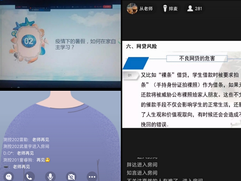 班会上,各年级辅导员结合当前国内疫情形势,教育引导学生积极遵守属地疫情防控政策,出行做好防护,不前往中高风险地区,保持常态化疫情防控不放松;合理规划暑期生活,端正学习态度,按要求完成新学期选课和假期论文;积极参加暑期“三下乡”社会实践、“我为父母做家务”劳动教育实践等活动;注意防暑降温,谨防溺水事件发生;留校学生严格遵守学校管理规定,坚持五日一检、每日签到,严禁夜不归宿,有事履行请假手续,离校提前报备;假期出行务必注意交通安全和财产安全,提高警惕,防范网络电信诈骗。同时,结合学生所处阶段,进行学业和职业生涯规划指导。