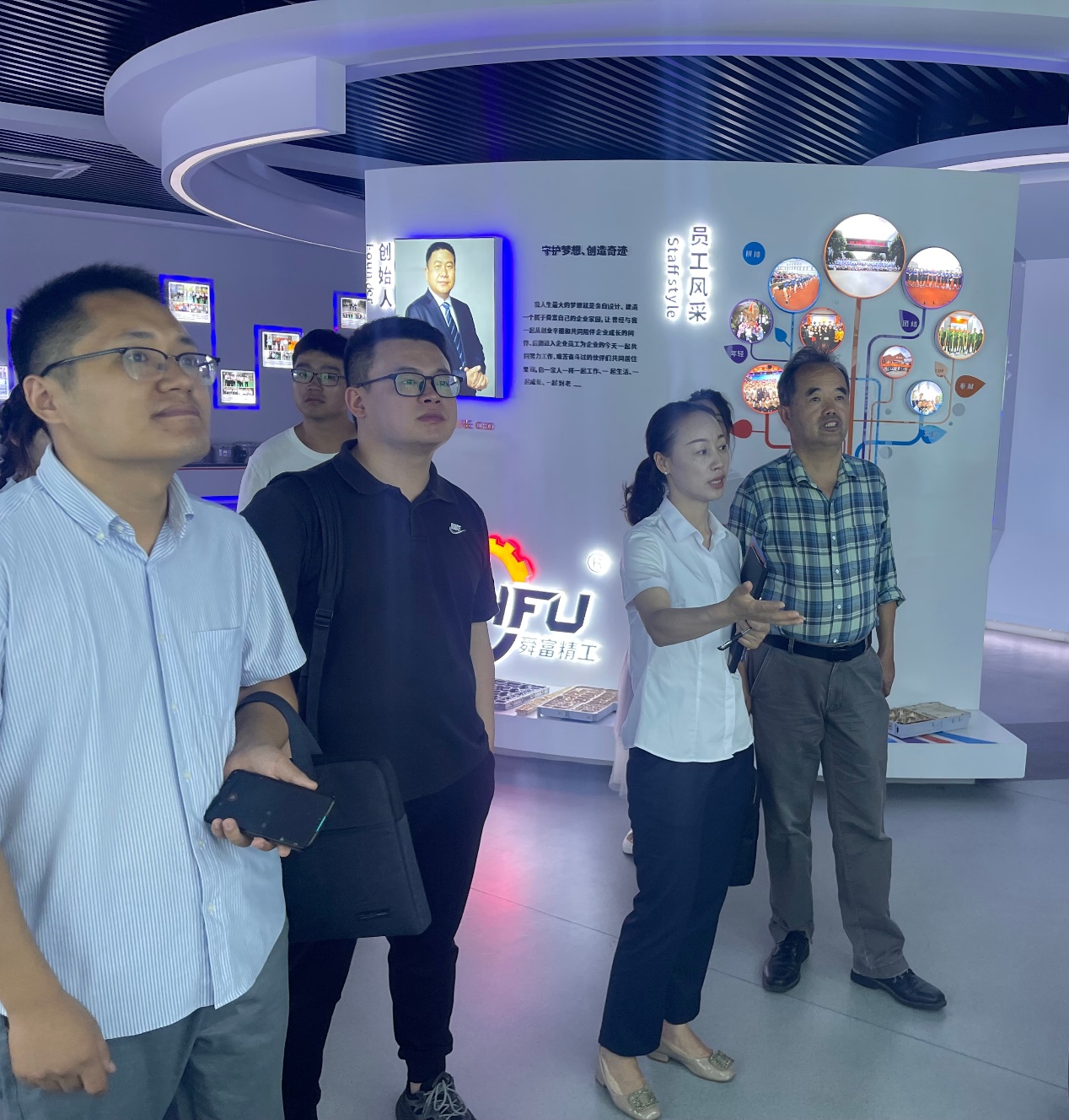 在芜湖来邦科技有限公司、芜湖舜富精密压铸科技有限公司、安徽邮谷快递智能科技有限公司和芜湖蓝翔电器成套设备有限公司,一行人在公司负责人的带领下分别参观了企业展厅和部分生产车间,了解了企业的建设发展历程、发展成效以及产品研发生产过程、企业的人才需求等。在座谈的过程中,伊长文介绍了学校办学历史、学院人才培养、学科建设、科研及社会服务能力和优势。李文江对学院学生创新创业、毕业生就业情况做了介绍。赵转哲、刘玉飞两位系主任介绍了专业建设、学科竞赛情况;刘永明、叶东东两位博士表达了希望与企业加强交流、开展科研合作的意愿。