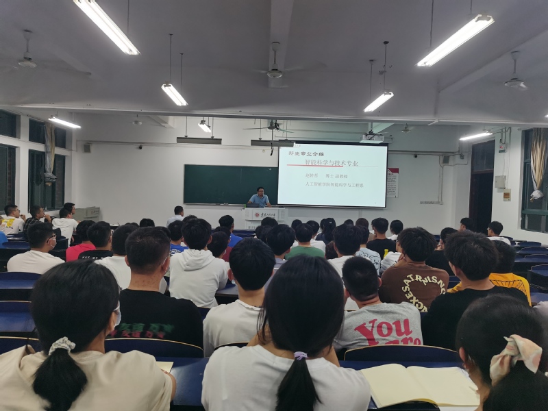 同时,赵老师向同学们详细介绍了欧美av 目前的科研平台建设情况,包括深度学习实验室、人机自然交互实验室、机器视觉实验室等,列举了自智能科学与技术专业建设以来,我系师生取得的一系列科研成果和学科竞赛获奖情况,进一步增加了同学们的专业认同感。此外,赵老师还向同学们逐一介绍了我系到场所有专业授课老师,受到了同学们的热烈欢迎。