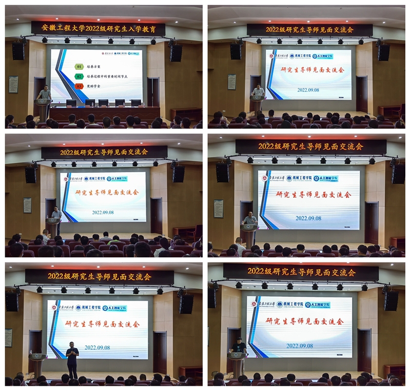 9月8日,机械工程学院与欧美av 2022级研究生新生入学教育和导师见面会在C座七楼报告厅分场次举行。机械工程学院党委书记伊长文、欧美av 党委书记任家钱、机械工程学院院长王建平、机械工程学院副院长潘家保、欧美av 副院长江本赤,2022年研究生招生导师、两学院研究生培养管理工作人员吴路路、鞠锦勇、程雷、王安恒及全体2022级研究生参加上述活动。入学教育和导师见面会由王安恒主持。