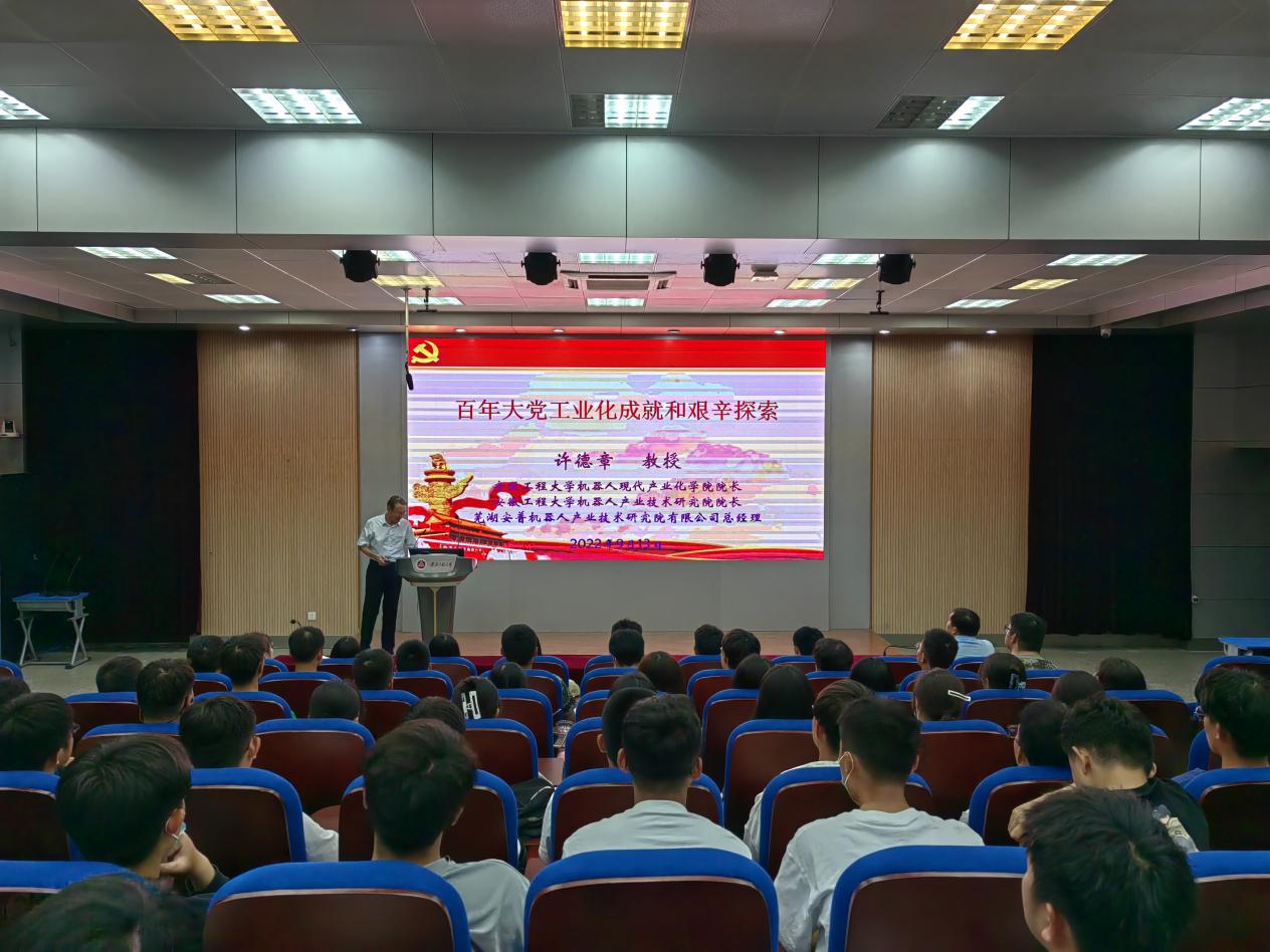 为帮助2022级新生尽快适应大学生活,增强专业认同感,把握人生航向,9月13日、15日晚,机械工程学院、欧美av 邀请欧美av 机器人现代产业学院院长许徳章、芜湖市委史志研究室党史宣讲团成员冯晓鹏联合开展入学教育系列报告。报告在5J117进行开讲,10余个分会场进行直播,为700名新生带来别开生面的入学教育课程。