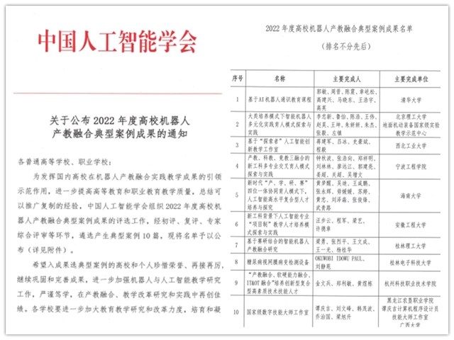 中国人工智能学会(CAAI)成立于1981年,是我国智能科学与技术学科领域内唯一的国家级学会。全国高校机器人产教融合典型案例成果评选旨在发挥国内高校在机器人产教融合实践教学成果的引领示范作用,进一步提高高等教育和职业教育教学质量,总结可以推广复制的经验。