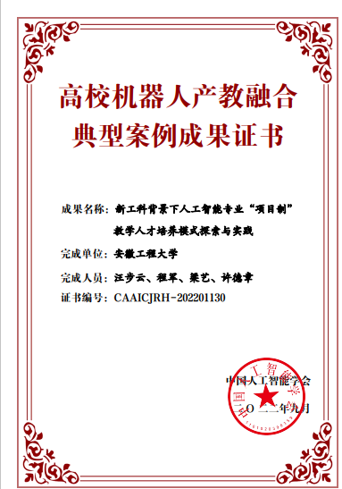 《新工科背景下人工智能专业“项目制”教学人才培养模式探索与实践》成功入选。本年度评选由中国人工智能学会组织,经初评、复评和专家综合评审等环节,遴选产生典型案例成果10个,清华大学、北京理工大学等10所高校成果入选。