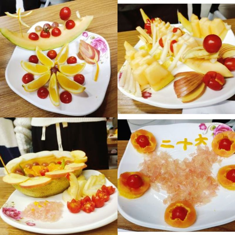 在工作人员宣读活动规则后,苹果、橘子、哈密瓜、小番茄等10余种水果被参赛选手们挑选一空,在书院公共厨房区域,参赛队员们分小组展开比拼。围绕学习党的二十大精神、党史团史、学校特色等主题,各队认真讨论、分工协作,有的负责设计、有的负责切水果、有的负责摆盘。色彩鲜艳的水果在大家的手中变成了富有创意的艺术品,或生动形象,或诗情画意。从大家的作品中,可以感受到活力、用心和无限的想象力。