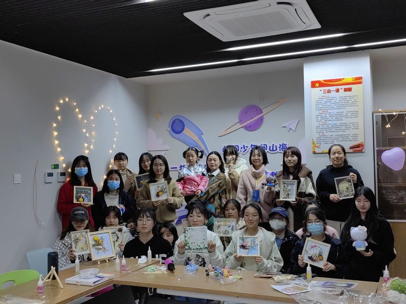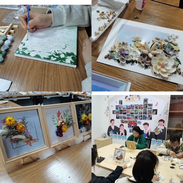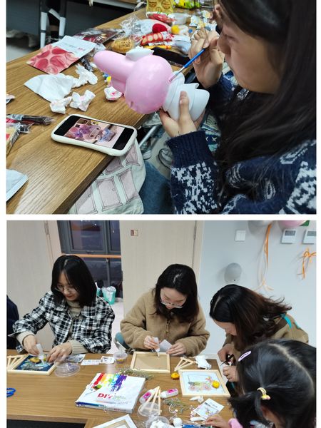 学院准备了手工画、拼图、编织包、库洛米、羊毛毡等各类DIY手工材料。大家挑选了自己喜欢的材料包,开始动手制作。这时才发现,想象中的粘、画、勾也并不简单,在不断尝试中才逐渐掌握技巧。何慧娟老师说,和学生们在一起制作手工,发现不少同学身手不凡,钩针用的很娴熟,画画也非常厉害,以后要多和同学们交流,互相学习。机器人212班刘瑞雪表示,平时学业压力比较大,这次活动让自己身心得到放松,虽然手工水平不高,但是制作过程很开心,也希望能把这样的活动带到班级。温馨的活动室、轻柔的音乐,老师、学生各显其能,互相交流着制作过程和经验。从如何拼成一朵花,到学生的生活、娱乐与学习,在交流中师生距离慢慢拉近、情感慢慢升温。