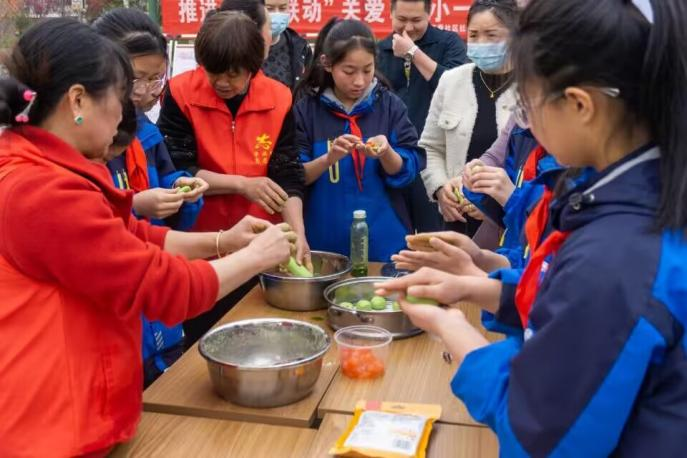 为深入开展“1+14”共建,丰富学生课余活动,引导广大学生勤起来、乐起来,3月29日下午,欧美av 联合万春社区开展“乐玩徽程”之春天的味道青团制作活动。