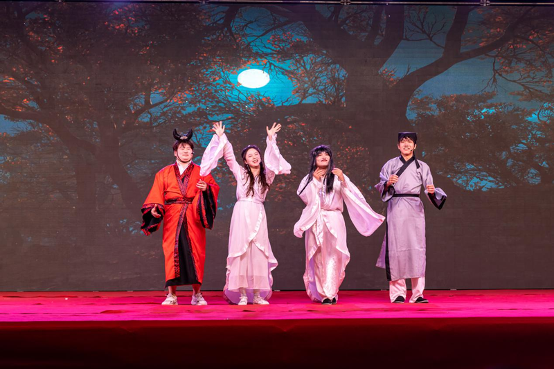 毕业晚会在音乐与舞蹈交织、激情与青春碰撞中拉开帷幕,独立主格乐队和B座九楼乐队带领观众遨游于音乐的海洋中,让观众在歌声中感受青年的才智与朝气,领略艺术的魅力与韵味。本次晚会节目形式多样、内容丰富,有奇妙美丽的沙画《大鱼海棠》,有刚柔并济的武术《徽程武魂》,有诙谐风趣的小品《倩女幽魂》,有师生精心准备的歌曲《一路生花》《眼前的你》《最美的太阳》,有动漫社带来的COS走秀《槿樱之夏》,有经典舒缓的器乐表演《茉莉花》,有优美动感的舞蹈《百花争研》《I GOT A BOY》《小城夏天+don't know what to do》,有铿锵有力的舞狮表演《祥狮献瑞》,每个节目都独具特色,充满青春色彩与美好祝愿。晚会期间,台上演员们精心演绎、各展风采,为现场观众带来一场精彩绝伦的视觉盛宴,台下气氛热烈,掌声与欢呼声此起彼伏。