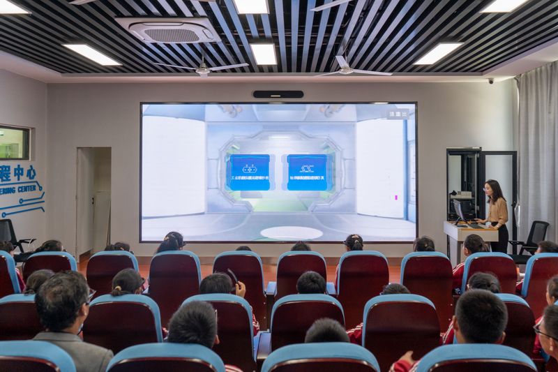 同学们在机器人科普志愿服务队成员的带领下参观了国际工程师学院校区的学习中心、图书馆、操场。一路上,大家谈笑风生,既兴奋又好奇。在实验室里,孙景余老师做了工业机器人码垛实验演示,向同学们介绍了工业机器人的基本原理和应用场景,同学们参与了现场有趣的互动体验。李婷婷老师通过数字孪生技术以及虚拟现实技术,带领大家更深入更直观的了解工业机器人的内部构造及工作过程。活动的最后,同学们参观了欧美av 发明协会成员的部分小发明、小制作的展示,包括手柄操控机械壁、血氧仪、感应垃圾桶、游戏机、桌面机器人以及音符智造器,激发了大家强烈的兴趣和热情。