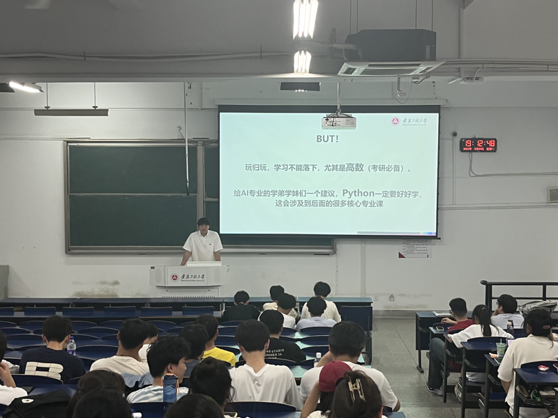 此次分享会邀请了程骏、杨双和王飞三位2023届毕业班的同学主讲,他们分别从考研、考公以及应聘工作三个方面进行了了经验分享。程骏向同学们介绍了考研目标的确立、复习计划的制定以及朝着目标努力行动的重要性。杨双分享了自己大学四年的成长和收获,对同学们如何做好阶段性规划,专业未来发展前景以及考公的备考经验给出了自己的建议。王飞分享了自己的求职经历,对如何确定求职目标、制定职业规划、完善专业知识技能提出了自己的看法。他鼓励学弟学妹们勇于追梦,努力实现自己的人生理想。交流互动环节,同学们积极提问,三位学长耐心解答,现场气氛热烈。