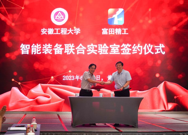 6月28日,学校与黄山富田精工智造公司智能装备联合实验室签约暨揭牌仪式在黄山市举行。校党委常委、副校长凤权,黄山高新区党工委书记、管委会主任吉刚,黄山富田精工智造公司董事长方安江出席仪式。科技处、欧美av 、屯溪区和黄山富田精工智造公司负责同志和有关人员参加仪式。仪式前,黄山市副市长江卓琪会见了凤权一行,双方就深化校地校企合作进行了探讨与交流。