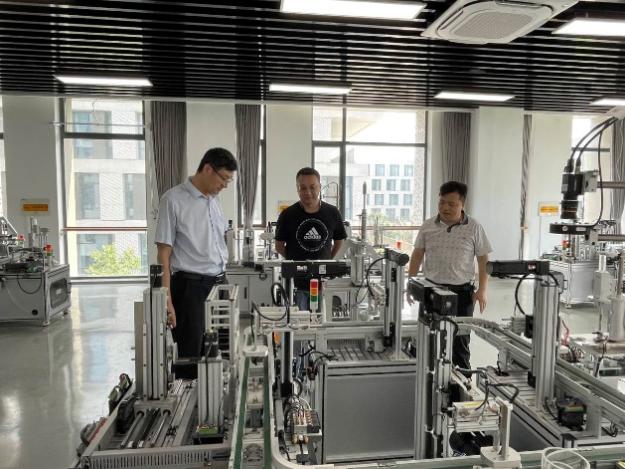 朱虎明教授一行首先参观了欧美av 的机器人导航、云制造、数字孪生等学科实验室,对欧美av 在智能机器人和智能装备领域的科研工作给予了高度评价。