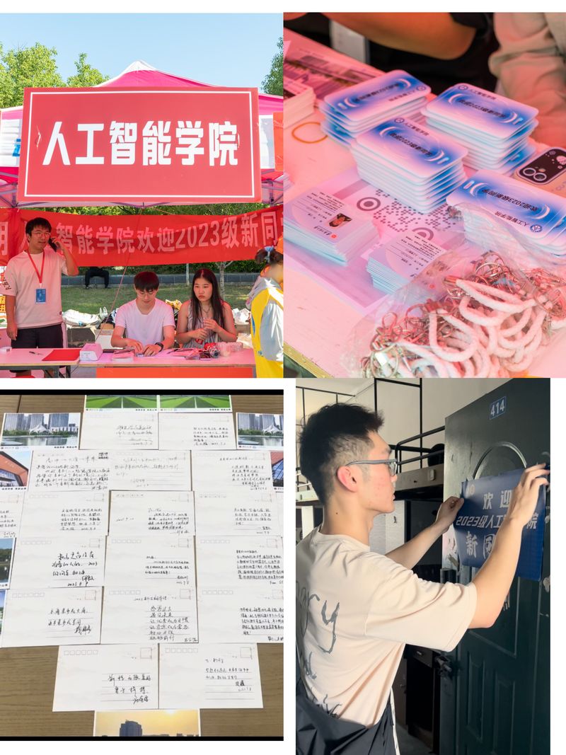 学院组建工作小组,制定迎新方案,多次召开迎新工作协会,学长导员培训会等,全力做好准备工作。学院微信公众号设置“智能新声”专栏面向2023级新生约稿,“以文会友”拉进网络与现实的距离。阅读量超1000+,未曾见面,却是知心友人。学院定制带有“欢迎欧美av 2023级新同学”的卡套,印制带有校园地标建筑的明信片,由学院全体师生写满祝福作为送给全体新生的第一份礼物。学院“智能机器人信息共融与协同控制”创新团队,将研制的复合移动机器人、全地形移动机器人、FER(无人叉车)等在迎新现场一一展示。兴趣是最好的老师,学院专业教师为提高新生专业学习兴趣带来了第二份礼物。在男生17栋、女生11栋,带有学院LOGO的门贴已提前黏贴在宿舍门上,宿舍分布手绘图发至新生班级群。从校门到宿舍,“一站式”服务让新生们快速入住,第三份礼物温暖了新生及家长。