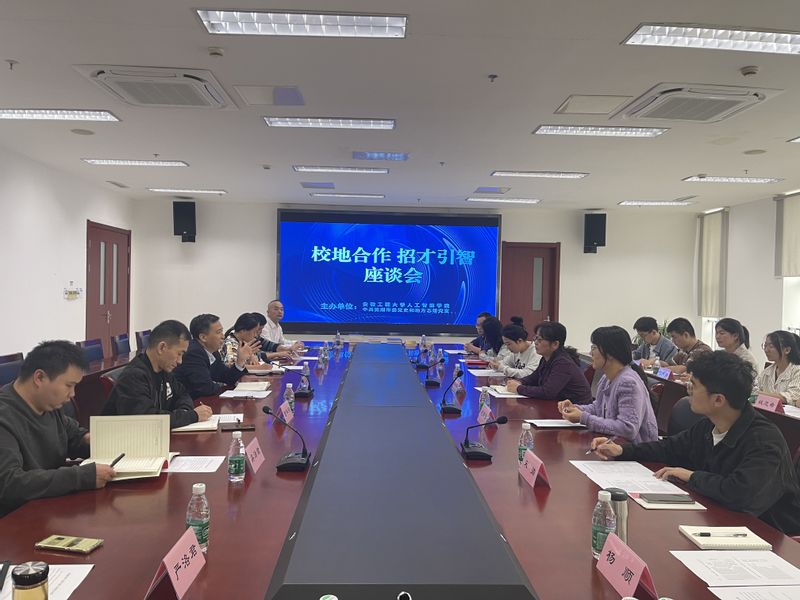 座谈会上,龙遗华对学院师生一行到来表示热烈欢迎,并对芜湖市委党史和地方志研究室的主要职能、人员架构、红色资源及共建需求进行介绍。李文江介绍了学院基本情况、“三全六专”育人实践等工作开展情况,希望双方加强交流,在党建、红色文化传播、学生思想政治教育方面开展广泛合作。
