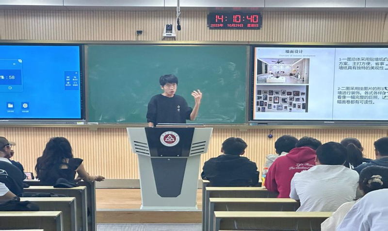 经过前期筹备与指导,10月29日下午决赛在5J116举行,共有7组队伍进入决赛。比赛现场,各小组依次展示,有的小组设计了科技感十足的未来风格;有的小组则走的是温馨舒适的路线;还有的小组更是将人工智能元素融入到设计中,让人眼前一亮。参赛作品充分展现了创新性、实用性和美观性。