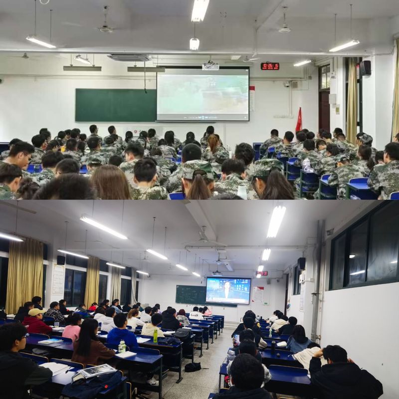 开展一次“红色观影”。为进一步弘扬新生爱国主义精神、厚植爱国主义情怀、传承红色基因,新生军训期间,组织观看《长津湖》《1921》《建党伟业》等红色影片,通过观影活动,带领新生回顾历史,感受革命英雄战士的崇高精神,进一步增强爱国主义情感,激励着大家继承和发扬英雄人物的伟大精神,涵养家国情怀、厚植红色基因、赓续红色血脉。启发学生今后要更加珍爱和平、努力奋斗、立足岗位,奋力书写新时代的使命与担当。