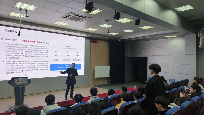 徐跃飞从“时代变了”“要求变了”“我们怎么办”三个角度开展讲座,将过去传统制造业与现代工业进行对比,提出新时代对人工智能领域大学生提出更高的要求,从自身在人工智能领域工作的经验,提出当今社会人才的具体需求,并强调现阶段新技术加新场景,需要新人才,即懂行业的人、懂应用的人、懂运营的人。报告会过程中,徐跃飞也分享了自己大学成长的经历,他希望同学们能够找准人生定位、合理规划大学四年,关注前沿技术发展趋势,不断提高自己的专业水平和能力,成为AI+X复合型产业人才。