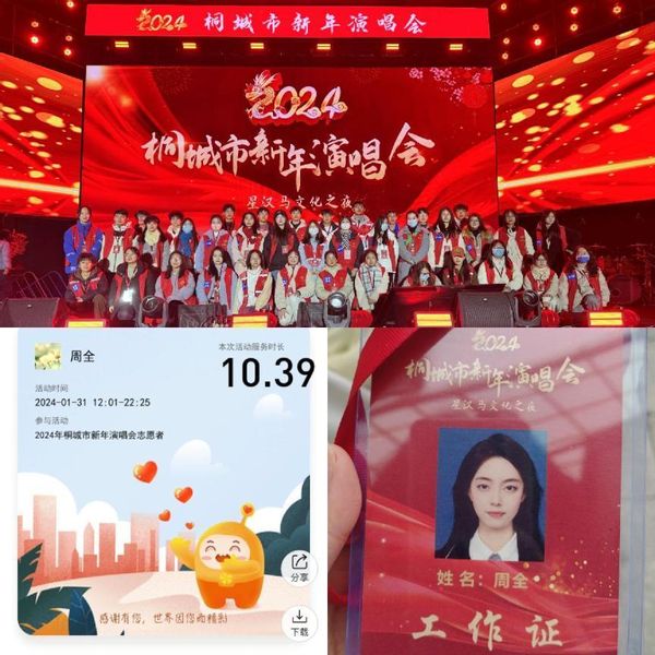 智能制造232的王晓翔同学加入了家乡的志愿者服务队,深入乡镇实地发放调研表进行生活质量考察。机器人专业222的王子潇同学则在寒假期间进行了实习工作,在教育机构担任了助教的职责。智科221的周全同学参加了桐城市新年演唱会志愿者活动。同学们结合自己的特长,持续丰富自己的假期生活,同时在实践中增长了知识、提升了能力,对于培养担当民族复兴大任的时代新人具有重要意义。