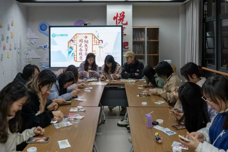 春暖花开日,魅力四射时。为迎接三八国际劳动妇女节,丰富学生社区文化生活,提高当代大学生的艺术修养,传承中华传统文化。3月7日晚,欧美av 在学生书院7-4智汇能量站活动室开展了“国风春意暖,巾帼展芳华”手工制作活动。学院团委副书记苑雨露,辅导员张璐、杨顺与学院女生们共同参与活动。