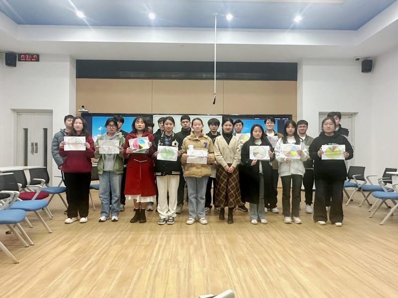活动伊始,同学们“围坐”一圈,自我介绍之后,通过“情绪传染源”的游戏进入了主题——情绪管理。通过“情绪相同卡”,勾选最符合自己的三大情绪,以此作为组队的依据。组队完成后,团辅正式开始,绘制“情绪蛋糕”、寻找情绪相同点等环节之后,李老师为大家重点讲述了“焦虑”这一普遍出现在同学之中的情绪产生的原因以及如何更好地处理消极情绪,指导大家,通过调整想法来远离一些消极情绪。