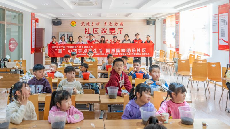 为推深做实“三全六专”育人实践,强化“1+15”团支部共建活动,引导广大青年深入社区开展实践,3月22日下午,欧美av “小雏菊”志愿服务团队联合鸠江区民政局、万春社区等单位,在万春社区党群服务中心开展“‘童’新巧手点亮生活 园滋园味助乐社区”儿童园艺与创意手工坊活动。万春社区、学院团委、万春路幼儿园相关负责人与近40名小朋友共同参与。