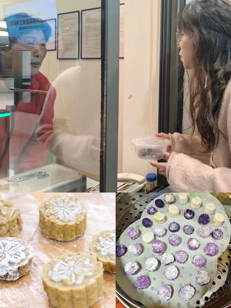 经过两个多小时的制作,同学们把所有的原材料变成了口味和花样繁多的中式糕点。随后,带上这份心意来到了自己所在的社区,将糕点分享给社区宿管阿姨、工作人员品尝,共享春天的味道。