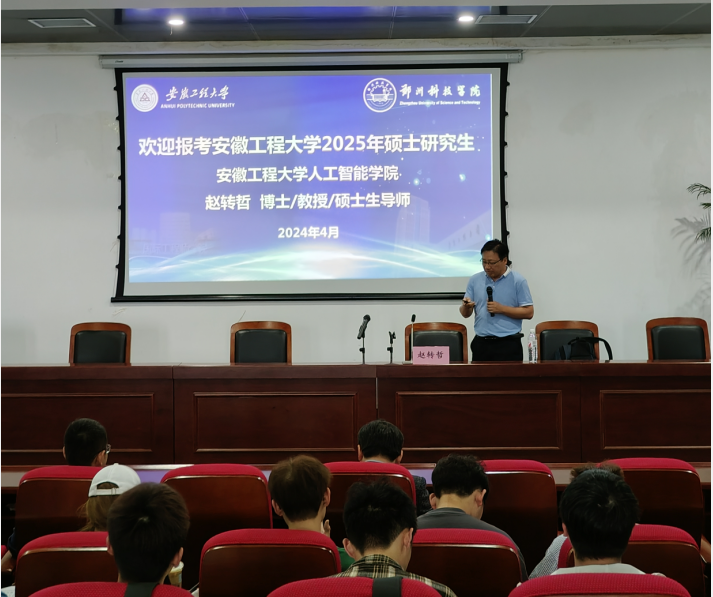 在河南,任家钱带领系部主任、党政办公室人员到郑州大学、河南科技大学与30余名有意向博士生进行座谈。座谈会上,任家钱宣传了芜湖市市情和人才引进政策,介绍了学校校情和学院发展状况,解读了学校人才政策、人才平台、人才待遇保障等情况,表达了学校求贤若渴的期盼,热情欢迎应聘的优秀博士来校开展工作。智能科学与工程系主任赵转哲教授在郑州科技学院为即将考研学生介绍欧美av 的师资力量、学科建设、研究生招生概况、教育管理、奖助学金政策等,并详细解答了同学们的询问,鼓励并欢迎河南考生报考欧美av 研究生。