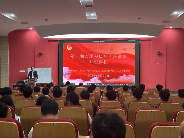 为规范发团员展工作,提高团员发展质量,5月10日,机械与汽车工程学院、电气工程学院(集成电路学院)、欧美av 联合举行第一期入团积极分子培训班开班典礼,典礼在校本部、国际工程师学院校区同步开展,校团委副书记钱涛、机械与汽车工程学院党委副书记秦广虎、相关学院学院团委负责人、全体入团积极分子参加典礼。典礼由机械与汽车工程学院团委副书记王海燕主持。