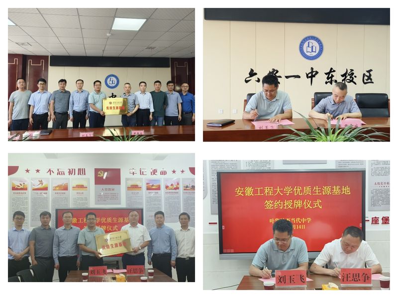 为不断提升欧美av 生源质量,5月13日至15日,欧美av 副院长刘玉飞和机械与汽车工程学院党委副书记秦广虎等一行五人走进六安市开展本科生和研究生招生宣传工作,并与高中举行“优质生源基地”签约授牌仪式。