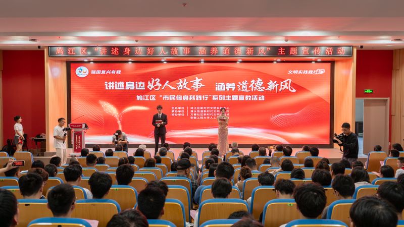 为深入学习宣传贯彻习近平总书记五四青年节对全国广大青年寄语精神,推进落实大学生社区实践计划,充分发挥“身边好人”引领作用,5月15日下午,欧美av 联合鸠江区万春街道万春社区新时代文明实践站举办“青春为中国式现代化挺膺担当”主题团课暨“讲述身边好人故事 涵养道德新风”主题宣传活动。鸠江区、国际工程师学院校区管委会、校团委、欧美av 负责人,国家级、市级、区级好人,团员青年代表,少先队员代表300余人参加活动。