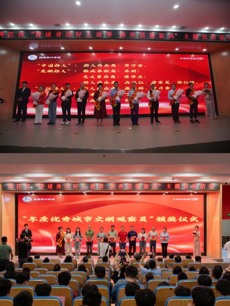青春赋“新能”。“中国好人”黄万香为鸠江区10名年度优秀城市文明观察员进行颁奖。少先队员代表为各级“身边好人”敬礼、献花。智造222团支部钟珂欣现场分享了自己的感悟,她表示,“好人故事”让她深受感动,她将以“好人”为榜样,不断提高自己,践行志愿服务精神,做“身边好人”精神的传承者、发扬者,帮助更多的人。