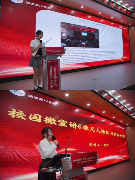 青年说“榜样”。智科202团支部陆妍以《七旬老人拾荒助学,圆贫困女童读书梦》为题,讲述了“芜湖好人”冉从仁捐资助学的好人事迹。他两袖清风、家无余财,却慷慨解囊的故事感动了在场的每一个人。智造212团支部赵宁以《学凡人榜样传向善力量》为题进行微宣讲,讲述了欧美av 青年学子在万春社区开展的系列志愿活动和践行“好人精神”的先进事迹。