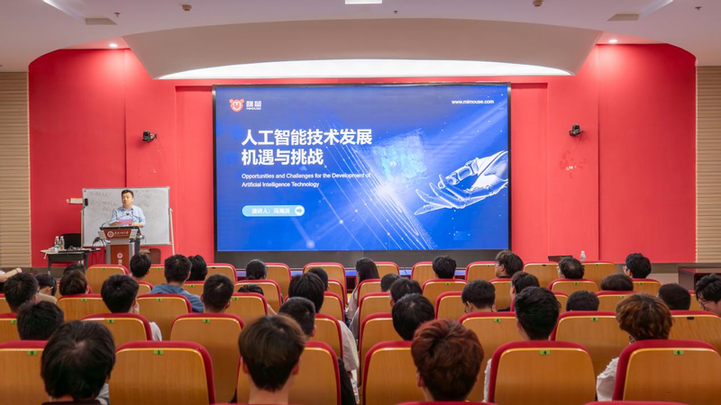 冯海洪从人工智能行业背景开始,结合人工智能领域的典型案例,从产业角度介绍了人工智能核心功能、AI大模型关键节点以及AI发展所面临的挑战和行业趋势。同时以咪鼠科技公司的核心产品智能鼠标为例,分析了智能硬件产品的市场现状、技术优势及未来发展规划。分享了自己职业生涯的发展历程以及创业的经历,希望将来作为人工智能领域从业者的同学们,在大学阶段就能够找到和确立目标、带着问题去探索和学习,不断地提升工程应用能力。最后互动环节,冯海洪回答了同学们的提问。