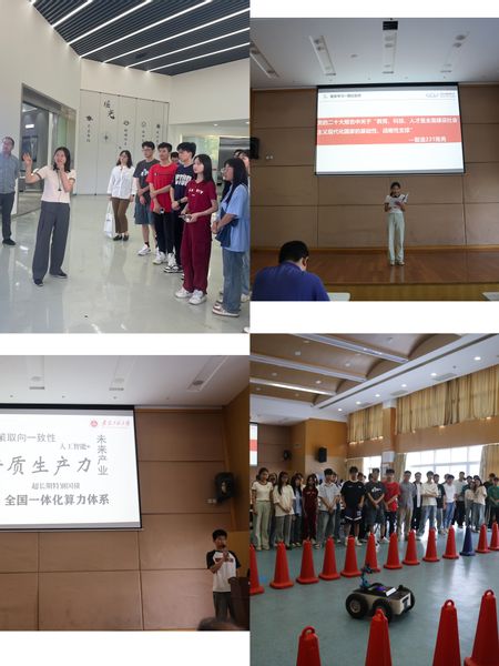 随后,师生来到奇瑞汽车股份有限公司杨子大楼。由智造231团支部陈秀领学党的二十大报告中关于“教育、科技、人才是全面建设社会主义现代化国家的基础性、战略性支撑”、习近平总书记五四青年节对全国广大青年寄语精神。校青年讲师团成员应拔211凌远志带来“青年说创新”《谋新重质 青年何为》主题微宣讲。奇瑞汽车股份有限公司周伟、郭晓卜、王曼玉分别对奇瑞集团-瑶光2025、奇瑞产品开发技术中心底盘、自动驾驶技术等做简要介绍。学生代表束勤及团队向全体人员展示了在第十八届全国大学生智能汽车竞赛的获奖项目Rover X 小车的相关技术运用。