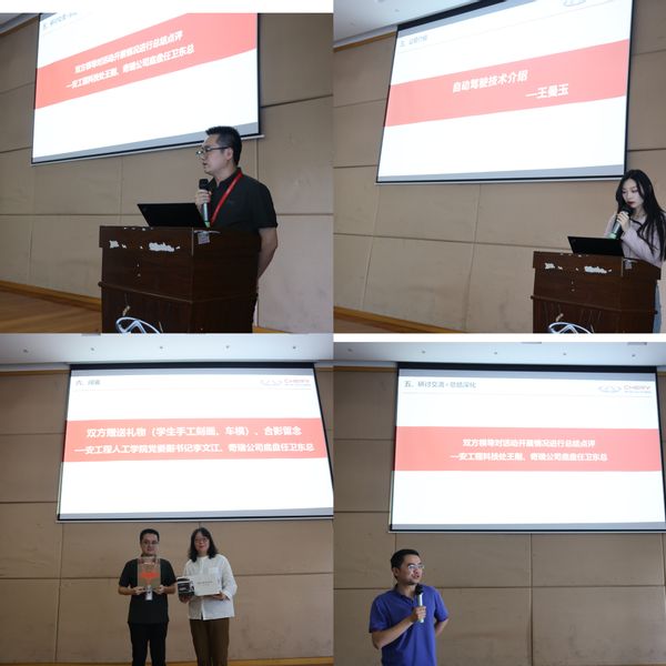 王刚向奇瑞汽车股份有限公司表达了感谢,希望同学们通过此次活动学习奇瑞的创业精神,了解专业前沿、拓展视野、提升水平。任卫东表示,奇瑞与欧美av 一直保持着紧密的合作,在未来校企合作中,通过加强新技术、实习岗位等方式,实现合作共赢。李文江、任卫东代表校企双方互赠礼物留念。