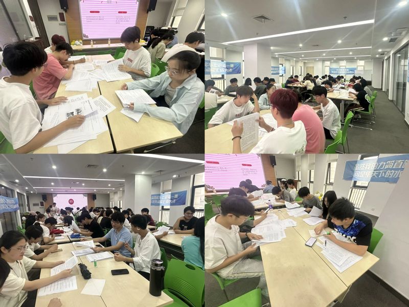 在紧张又有趣的拼接诗环节,同学们以抽签的方式分成8组,各组根据提前准备好的素材,经过裁剪、创作,形成一组全新的诗句,结合“红色家书”主题进行创意回信。在熟悉的文字中发掘出诗意,感受文字重组的奇妙。张雨杰、徐俊杰对小组的拼贴诗进行了创作灵感分享。读者委员会成员智科231江贤、智科232韦娉婷向大家推荐了《百年革命家书》,倡议广大团员青年回顾历史,对话英雄先烈,观照现实、传承革命信仰。智造221徐绩表示“当我们与书中的文字产生共鸣,活动的意义才在此刻有了具体的体现;当我们对历史文化产生新的感悟,红色的血脉才在青年一代有了真正的传承。”