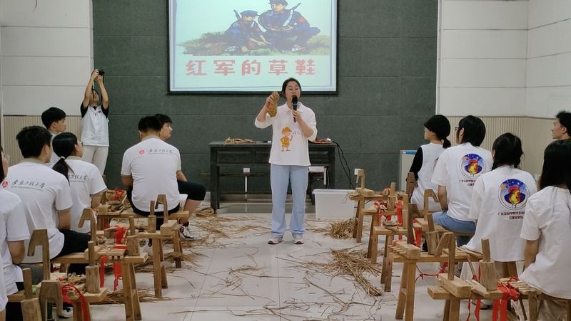 “纸上得来终觉浅,得知此事要躬行。”为深刻感受当年红军的艰苦生活,实践团成员参与了“红军的一天”体验教学。踏上崎岖的山路,进行了一场急行军,重走红军挑粮小道。在3.5公里的山路急行中,汗水浸湿了衣衫,疲惫挑战着极限。在井冈山老乡家里,实践团成员开展自制红军餐的体验活动,在老乡的指导下,团结协作、分工明确,生火、洗菜、做饭,有条不紊地体验了一次制作红军餐。夜幕降临,实践团还围坐在教室里,学习编织红军草鞋,唱响红色歌曲,分享心得体会。在长途跋涉与自力更生的生活实践中,这份纯真的革命情怀在每个人心中久久回荡。